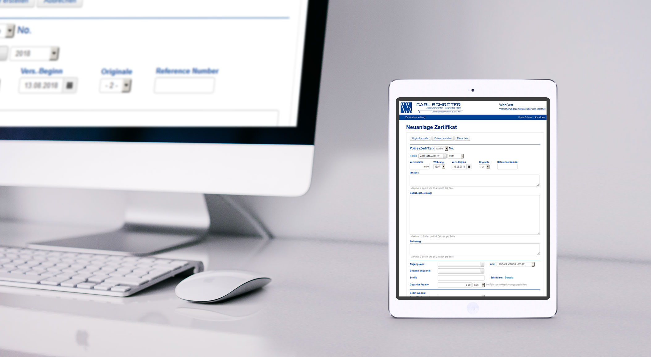 Ohne Versicherungszertifikat kein nachweisbarer Schutz, insbesondere im Akkreditivgeschäft. Mit WebCert bietet Carl Schröter eine passwortgeschützte Onlineanwendung, über die jederzeit die Möglichkeit besteht, Zertifikate zu erstellen und zu versenden.